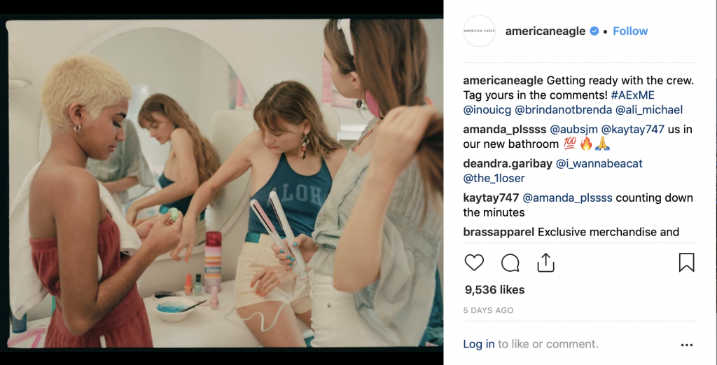 Ein glückliches Medium kann darin bestehen, Kundenbeiträge in sozialen Medien zu teilen. Es ist weniger zeitaufwändig als das Erstellen eines Markenwettbewerbs und Sie müssen nicht auf Influencer vertrauen. Sie können den Inhalt, den Sie am meisten mögen, einfach erneut veröffentlichen und dem ursprünglichen Inhaltsersteller einen Gruß aussprechen. American Eagle macht dies auf Instagram mit ihrer # AExME-Kampagne: