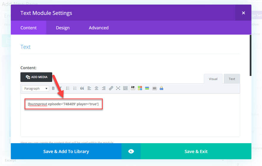 Wenn Sie auf eine Episode klicken, erhalten Sie einen Code, den Sie an einer beliebigen Stelle platzieren können. Er befindet sich jedoch im Allgemeinen im Hauptteil eines Blogposts.