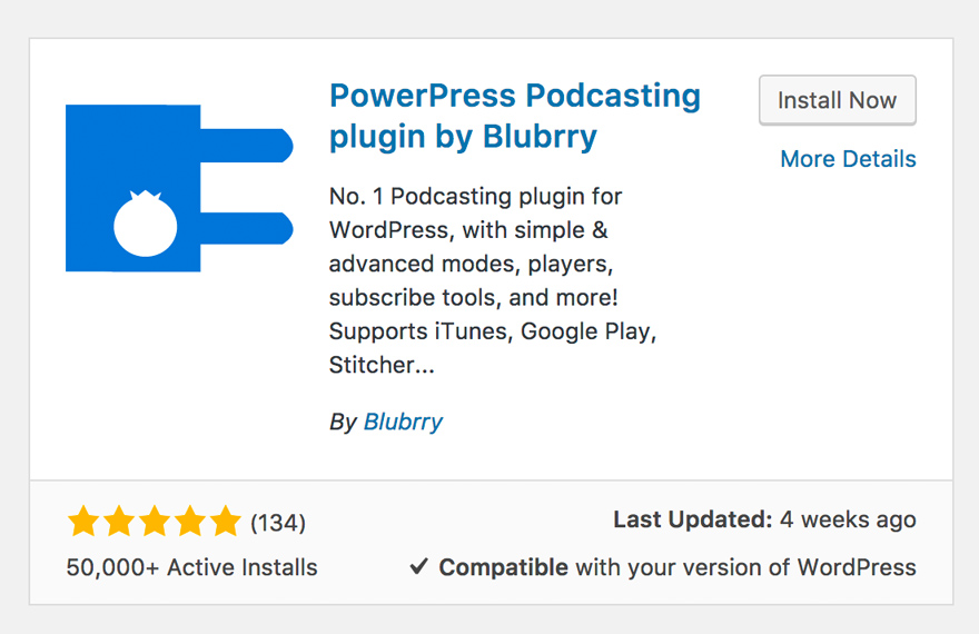 Kurz gesagt, Blubrry PowerPress ist ein All-in-One-Plugin, mit dem Sie einen Podcast vollständig von Ihrer WordPress-Webseite hochladen, hosten und veröffentlichen können. Sie müssen keinen externen Dienst in Anspruch nehmen (obwohl Sie dies können, wenn Sie möchten). Alles, von Abonnementoptionen über einen integrierten Player bis hin zur RSS-Verwaltung, funktioniert sofort. Rrrr… das Plugin-Repository.