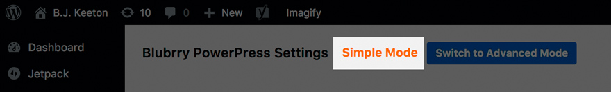 Wenn Sie Ihre PowerPress-Einstellungen zum ersten Mal öffnen, kann dies etwas entmutigend sein. Mach sie sich dennoch keine Sorgen. Stellen Sie einfach sicher, dass Sie sich im einfachen Modus befinden. Im erweiterten Modus haben Sie eine Menge Kontrolle über Ihren Podcast, aber im einfachen Modus ist es einfacher, durch die Ersteinrichtung zu kommen.