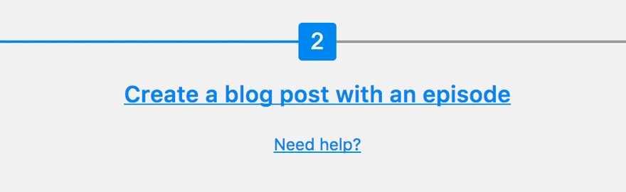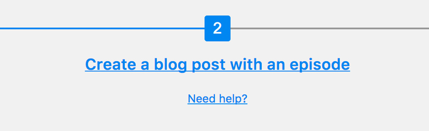 Sie können entweder auf den blauen Text oben auf Ihrer Einstellungsseite klicken – dort steht „Blogpost mit einer Episode erstellen“ – oder Sie können in Ihrem WP-Dashboard zu „Beiträge“ -> „Neu hinzufügen“ navigieren und Ihren Blogpost aufschreiben so wie du es immer tun würdest. Beide arbeiten genauso.