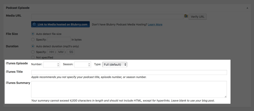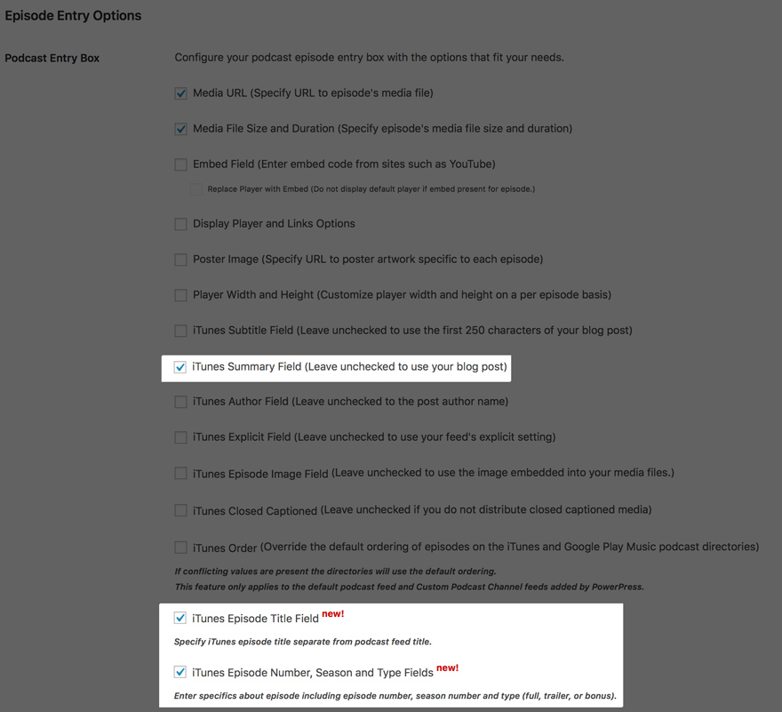 Die von Ihnen ausgewählten Felder werden jetzt angezeigt, wenn Sie einen neuen Beitrag / eine neue Episode veröffentlichen, damit Ihr Inhalt in das neue und verbesserte iTunes-Podcasting-Erlebnis passt.